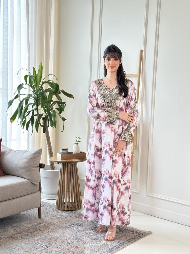 مخور أسماء يجسد الفخامة والأنوثة في قطعة واحدة. صُنع من حرير إيطالي فاخر ينسدل برقة على الجسم، مع لمعة ناعمة تضيف لمسة فاخرة لكل إطلالة.