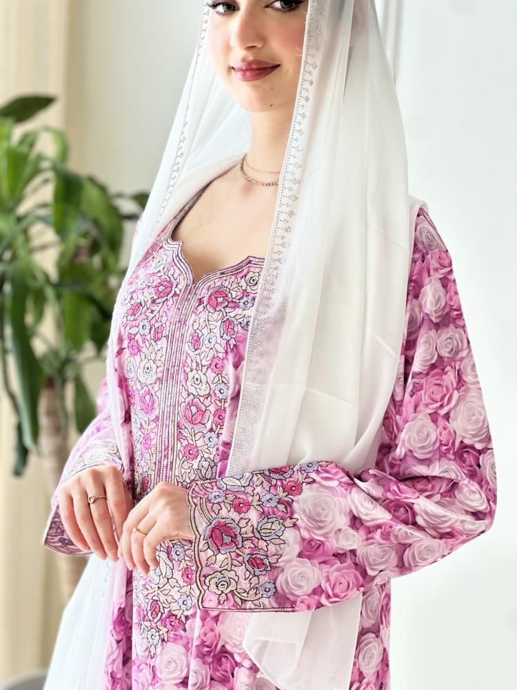 تم تزيين الجلابية بتطريزات يدوية دقيقة باستخدام خيوط عالية الجودة، مما يضفي عليها لمسة من الفخامة والجمال.